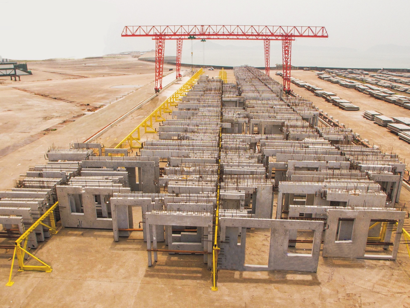 公司位于溫嶺東海之濱,松門鎮龍擔嶼裝配式建筑工業化科技產業園區內。園區總占地面積700余畝,其中裝配式PC構件生產占地200余畝,擁有30000㎡工業廠房和150畝構件堆場,以及25000㎡的辦公、住宿、食堂、娛樂場所,投入國內先進的自動化環形流水生產線1條,固定模臺生產線4條,規劃年產預制構件約10萬立方砼,可生產疊合樓板、樓梯、內外墻板、梁柱、陽臺、空調板等不同類型的構件。